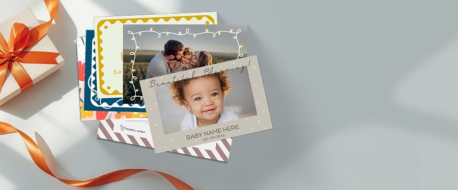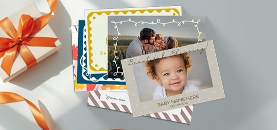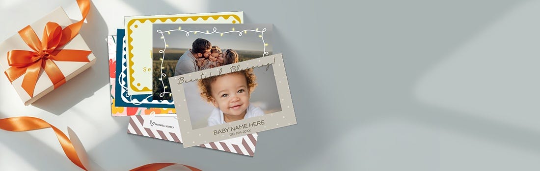 We offer custom-printed, double-sided flat holiday cards that you can fully personalize with your own design, photos, and text.