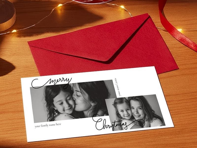 All holiday cards are available as flat cards only, offering a sleek and contemporary alternative to folded designs. Optional envelopes are available to pair with your cards for easy mailing. Flat cards are easy to design, easy to mail, and perfect for bold visuals or minimalist layouts.